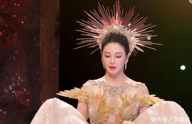 上场一身大花袄就足够博眼球了,但除此以外,上淇还不忘了趁机秀个好身材。 这低胸礼服,低到其抬手发言时,一不小心胸贴都露出了一个角。